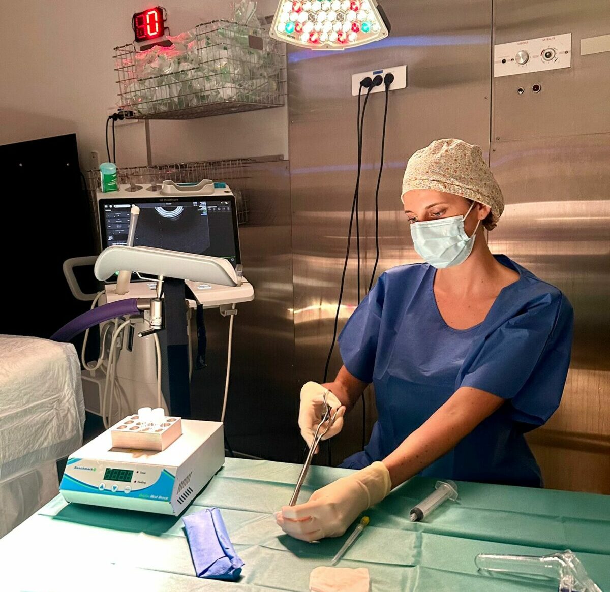 Le monitorage de la stimulation ovarienne nécessite des échographies endo vaginales itératives, ce qui peut être mal vécu. Dans ce cas, il est possible de réaliser les échographies par voie sus pubienne si le patient le demande. En cas d'impossibilité de visualiser les ovaires par voie sus pubienne, on peut proposer au patient deréaliser une échographie endo vaginale sous MEOPA (Mélange Equimolaire Oxygène Protoxyde d'Azote), pour un meilleur vécu. La ponction ovocytaire écho guidée par voie vaginale est réalisée sous anesthésie générale ou anesthésie locale selon le choix du patient.